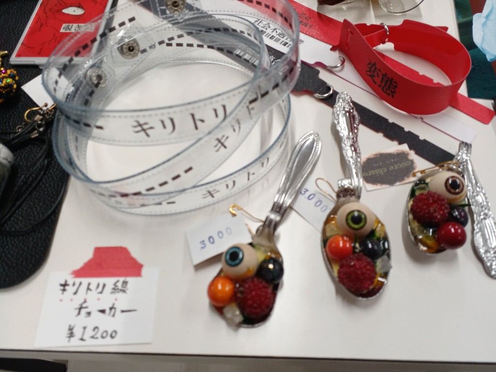 絵柄と雰囲気にガツン!と一目惚れしてしまい、1品1品デザインを凝視しながら中身のないふわふわした会話をしたのちチョーカーと新作ロングTシャツをスッと購入……。わたしがフェチフェスのスタッフカードと腕章を付けてもろに裏方だとわかる状態で巡回していたためか、「え!?購入していただけるんですか!?」「え!?アッ、はい……今はお買い物タイムなので!」とお互いびっくりするという妙な展開に。5月20日(土)・21日(日)の『デザインフェスタ』ではライブペイントを担当するそうなので、これも観にゆきたい……。