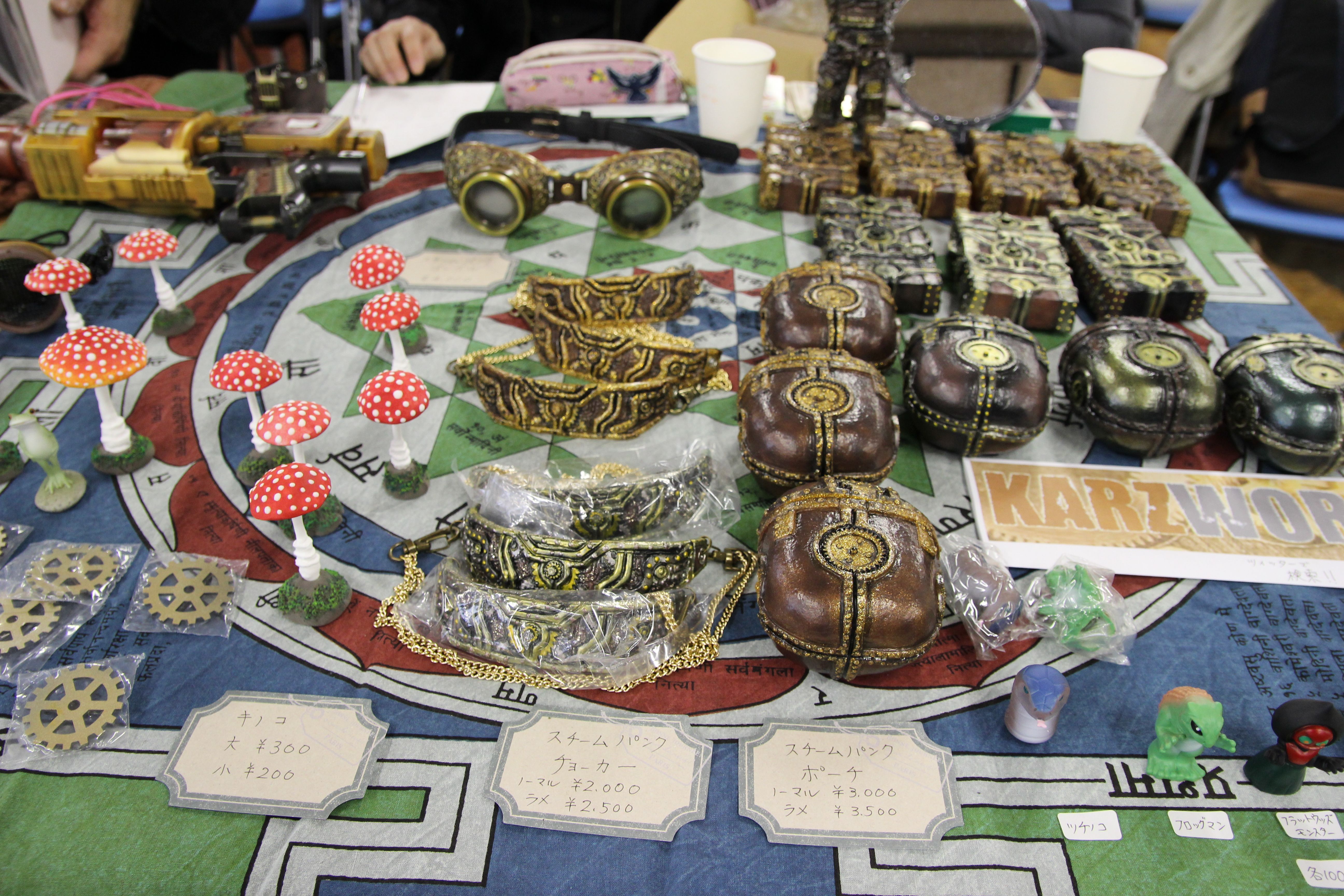 今回は、ピストル、ライフル、ゴーグル、ガジェットなど、装備品を中心とした出展である。スチームパンク系の衣装を身にまとったが「まだちょっと物足りないなぁ……」というとき、Karzworksさんの作品が重宝する。ゴーグルやガジェットでフル装備すれば、ユニークなかっこよさを演出できること間違いなし!